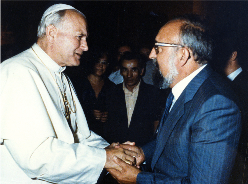 1983年,罗马教皇约翰·保罗二世在罗马欢迎他的朋友潘德列茨基(摄影:Mari)